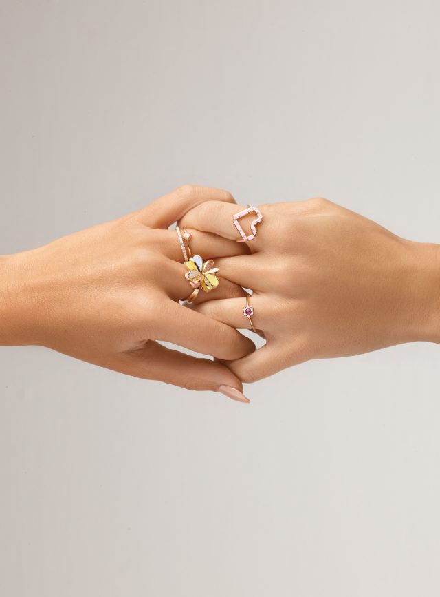 Part one of the collection boasts 17 pieces, featuring extravagant statement rings, mini stackable