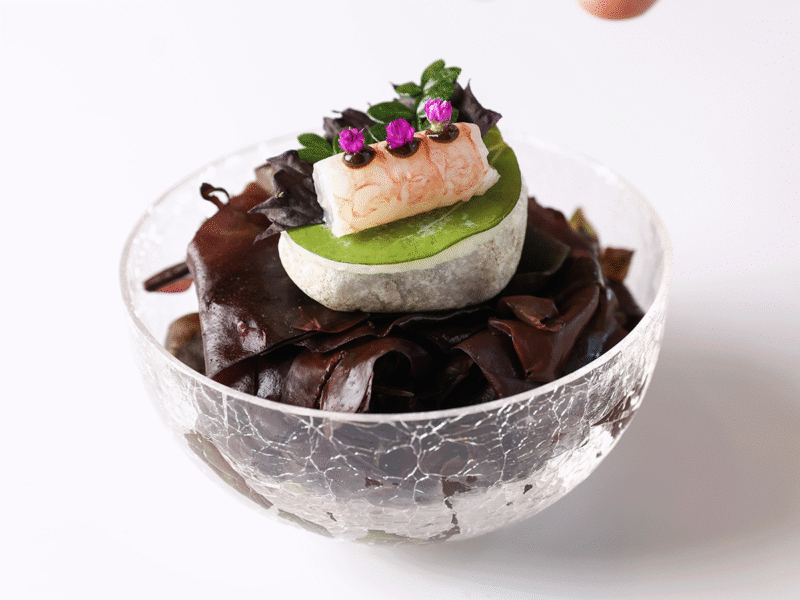 • Langoustine with Pickled Attika Kohlrabi, jalapeño & purple shiso
